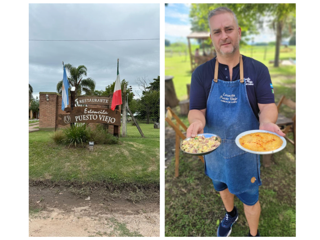 En su “estancia” sirven picadas con chacinados de la zona, vinos locales, la famosa roñosa (revuelto con chorizo, huevo y algunos le ponen cebolla) y frico (una especie de tortilla que lleva papas, queso curado rallado, cebolla, aceite de oliva, sal y pimienta). También presenta con orgullo las pastas caseras, íntegramente amasadas por ellos. El entrañable raviolón, receta de su nona. Platos simples y hechos con pocos ingredientes, producto de inmigrantes que llegaron a estas tierras con hambre y la capacidad de transformar las carencias en recetas memorables.