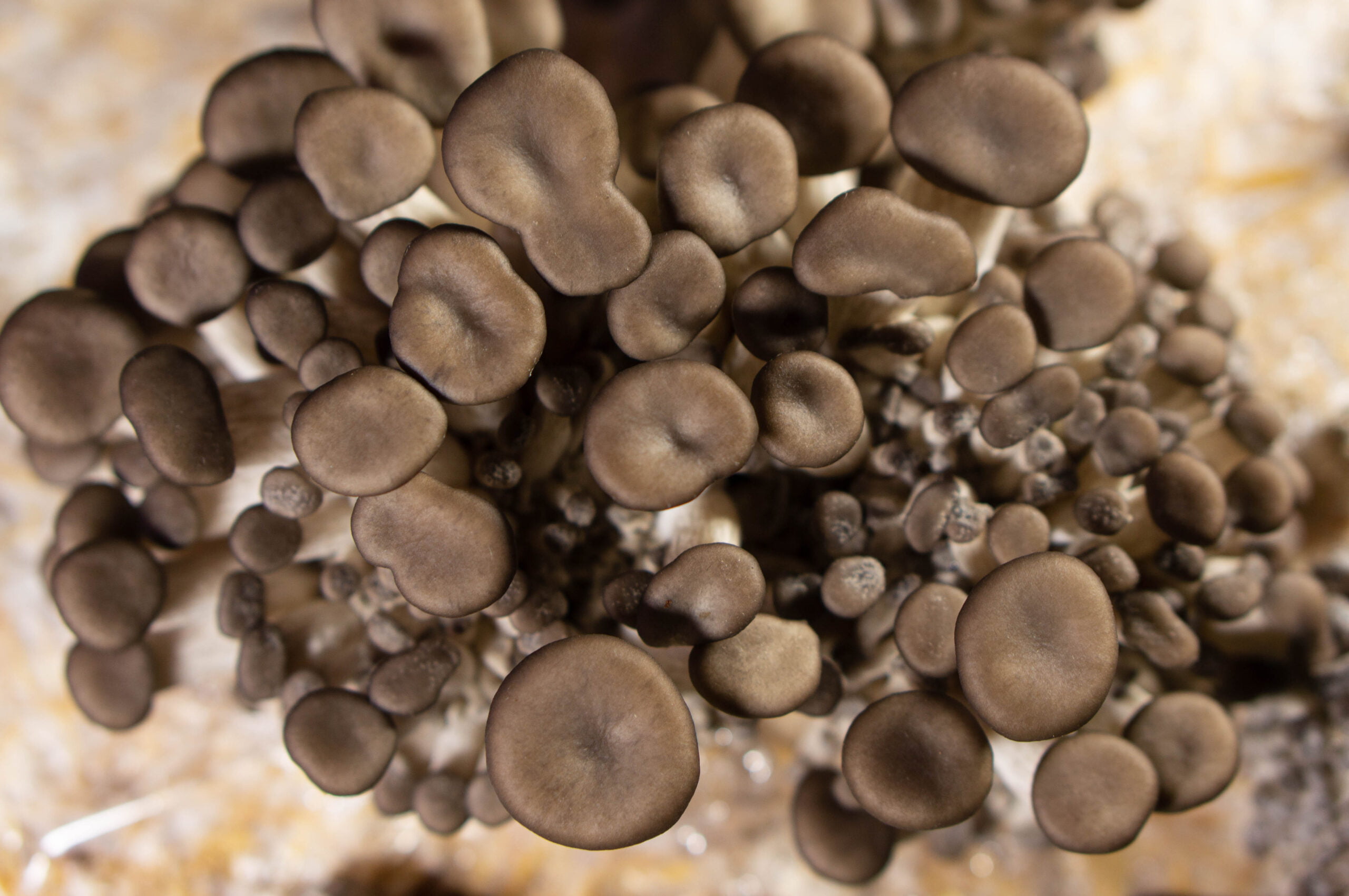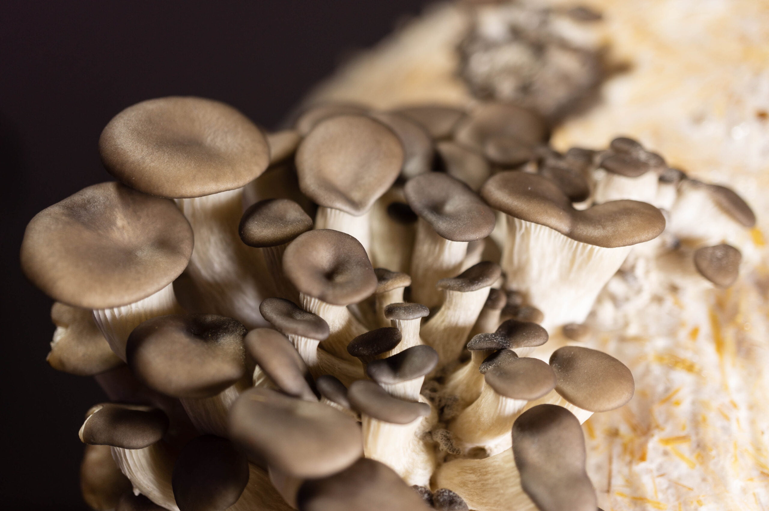Exactamente. Por ejemplo, el champiñón crece en tierra compostada y pasteurizada. Siempre que metas algún hongo que degrade madera o este tipo de sustrato va a crecer. Una vez que lo metiste en la bolsa se va a una sala que se llama incubación de 15 a 25 días (dependiendo de las condiciones). Es una sala completamente oscura donde se desarrolla el micelio, es decir el hongo va colonizando todo ese bloque (paja pasteurizada). Una vez lista esta etapa la pasamos a otra sala, que es la de fructificación. Ahí se baja la temperatura, hay luz, hay mucha ventilación para la renovación de oxígeno, ya que el hongo empieza con un metabolismo mucho más acelerado y todas esas condiciones el hongo lo toma como señal de que tiene que fructificar. Se viene la época desfavorable.