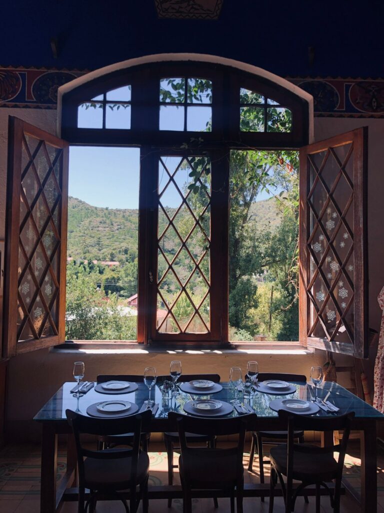 Virginia y Martín dejaron la ciudad de Córdoba para instalarse en esta casona, una de las que el arquitecto francés León Dourge edificó en Cruz Chica. Hoy allí funciona una posada boutique, el restaurante y la casa de té. Los platos se sirven en una sala de ventanales gigantes, frisos pintados y techos altísimos con vista a las sierras. Al mejor estilo fonda, la comida es casera, rica y abundante.