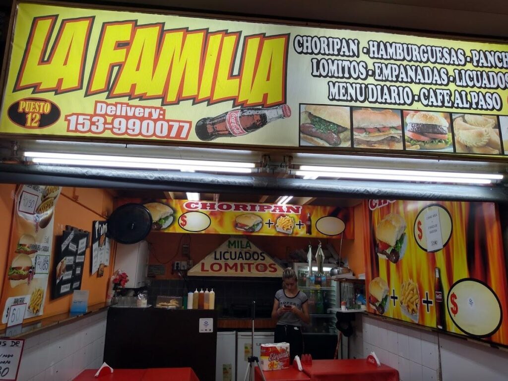 Si sigue por la opción de comida rápida ubicada en el puesto 12 se encontrará con La Familia. Choripanes, hamburguesas, panchos, lomitos y menús diarios.